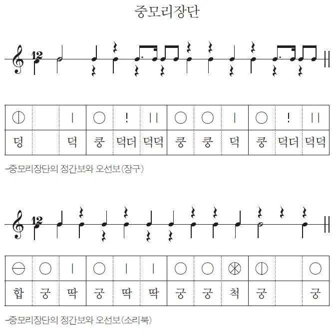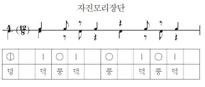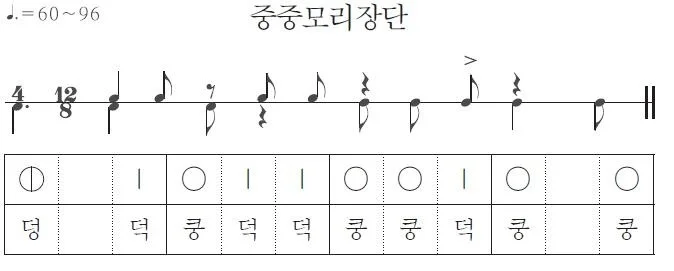 - 박자 구조: 12박 (3박 × 4각, 중모리보다 빠름)