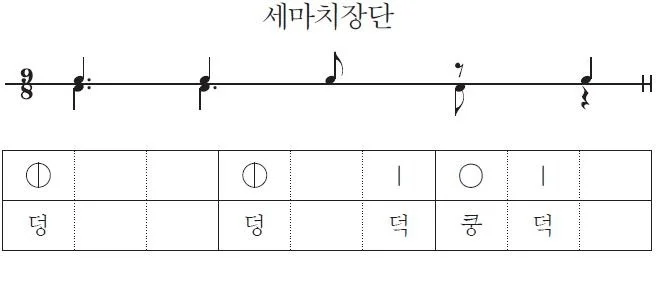 - 특징: 3박이 세 묶음으로 이루어진 독특한 구조입니다. 둥글둥글 굴러가는 듯한 리듬감이 특징이며, "창부타령" 같은 민요에서 만나볼 수 있습니다.